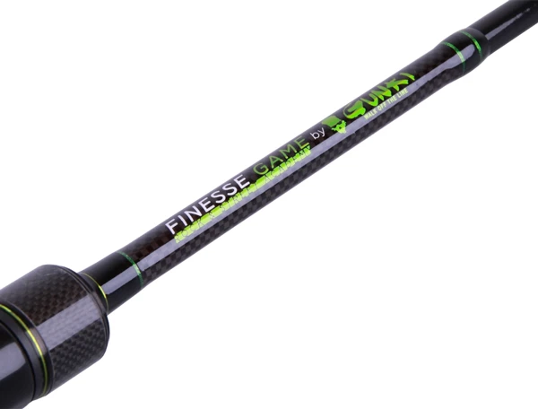 De ultra-light spinhengel van de Gunki Finesse Game set heeft een zeer gevoelige, maar sterke hengeltop zodat je vrijwel elke aanbeet voelt. Het hengeltje is gemaakt uit carbon en heeft een minimaal werpgewicht van 0,7 gram, alles wat hier onder licht gooit gewoon wat slechter in, het maximaal werpgewicht is 7 gram, alles wat hier boven is gaat zwaarder aanvoelen en minder goed werpen. Als dit gewicht hoger was hoorde dit hengeltje niet meer onder de categorie ultra-light, dit betekent dat je heel licht kan vissen en dus een kleine vis even leuk kan aanvoelen als een grote vis, het hengeltje is dus instaat om grote vissen en kleine vissen te vangen.